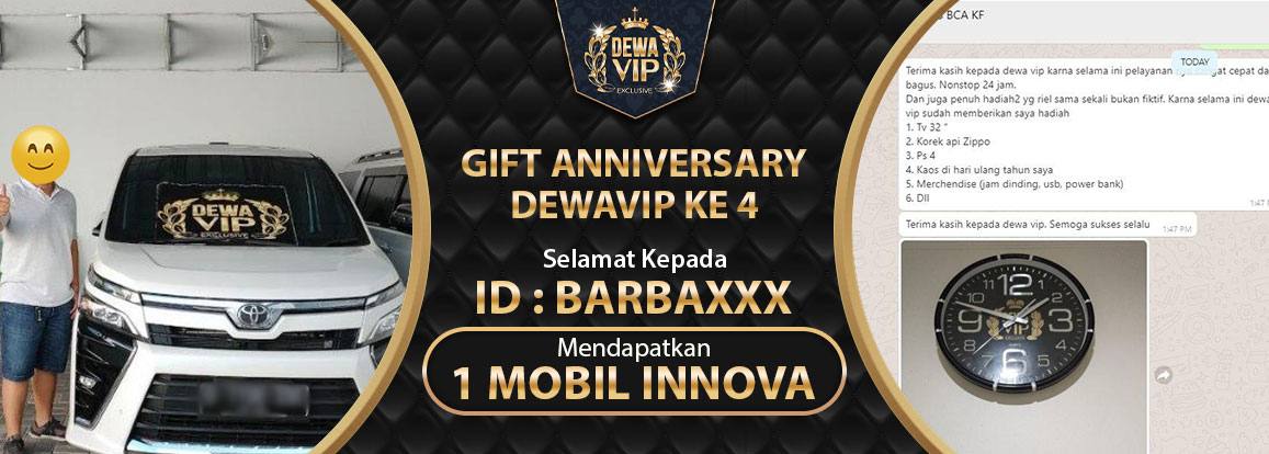 PEMENANG EVENT ANNIVERSARY VIPCLUB88 2